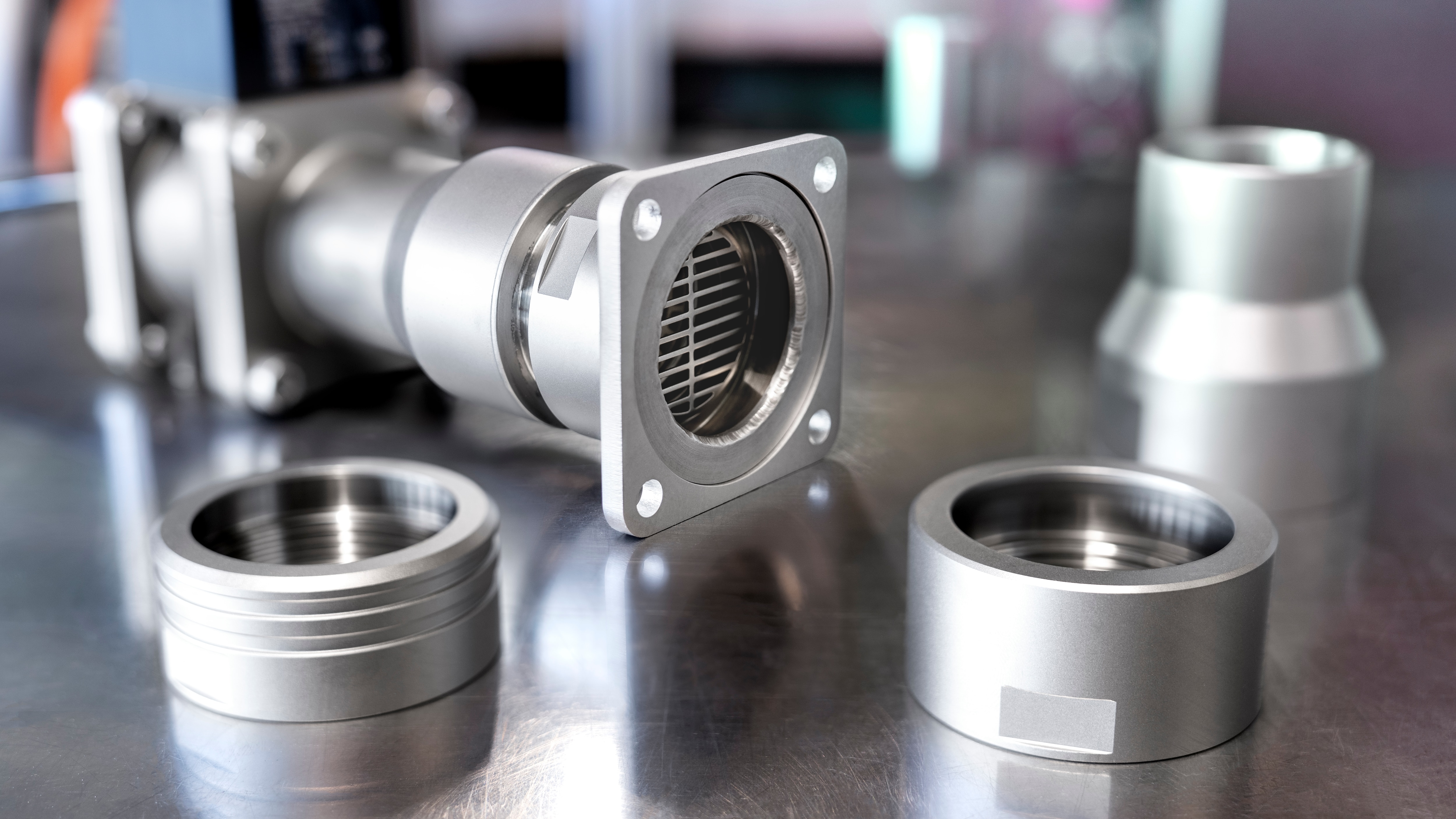 The LHS 410 P can be equipped with various adapters. Compressed air or blower adapters are possible at the air inlet and double flange, tubefilling, nozzle or thermocouple adapters at the air outlet.