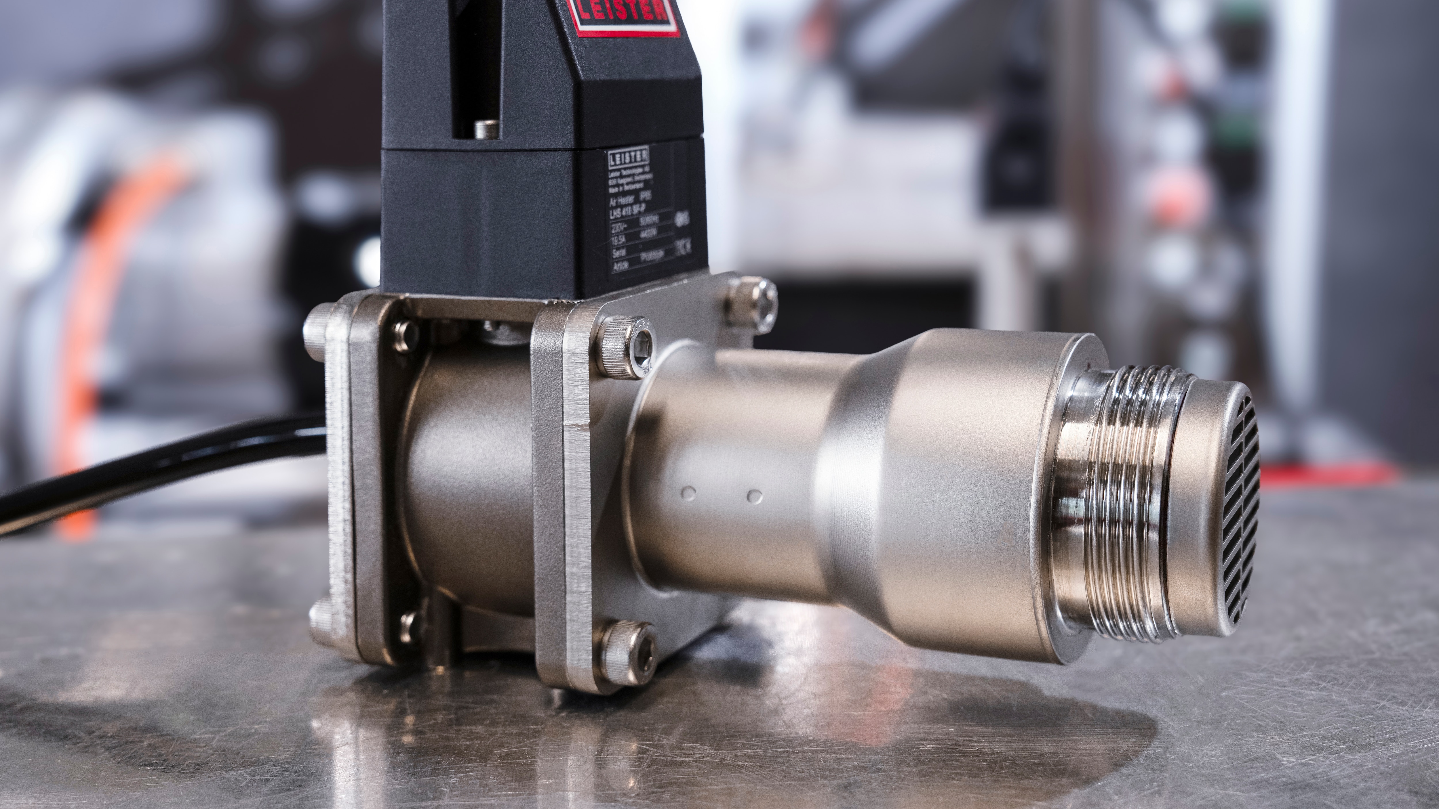The LHS 410 P (as well as the LHS 210 P) is the first compressed air heater from Leister designed for an operating pressure of up to 6 bar. Its housing is made of pressure-resistant material. The LHS 410 P can be operated directly with compressed air and requires no additional blower. Thanks to its compact design, it is ideal for integration into industrial systems, such as tube production.