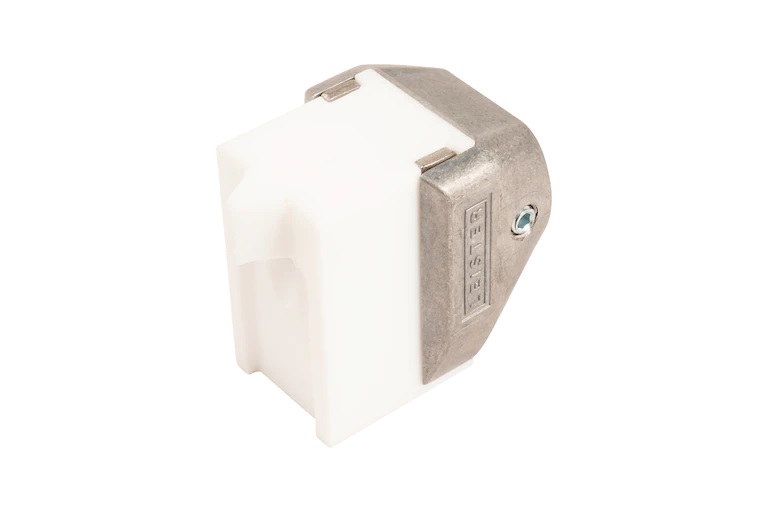 Welding shoe 8-10mm V-Seam for Weldplast S4⁂ P/N: 146.249⁂ Item Name: Welding shoe V8/10 EA⁂ Welding Seam Geometry: V-seam⁂ Air Guide: External⁂ Brand: Leister - Swiss.